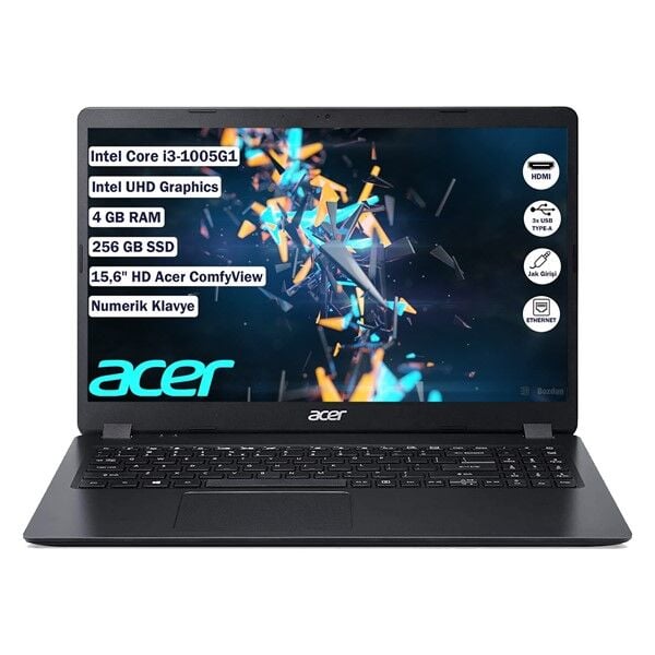 ACER 15.6'' EE215-52 NX.EG8EY.001 CORE i3 1005G1-4GB RAM-256GB NVME-FDOS