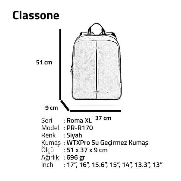 Classone 17'' Roma Serisi PR-R170 Wtx Pro Su Geçirmez Kumaş Laptop Notebook