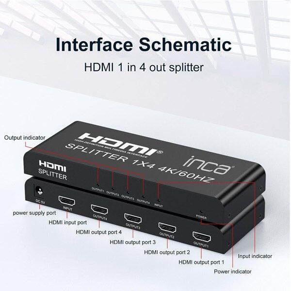 INCA 1port IHSK-460 1port HDMI (giriş) 4port HDMI (çıkış) 4K-60Hz HDMI Splitter