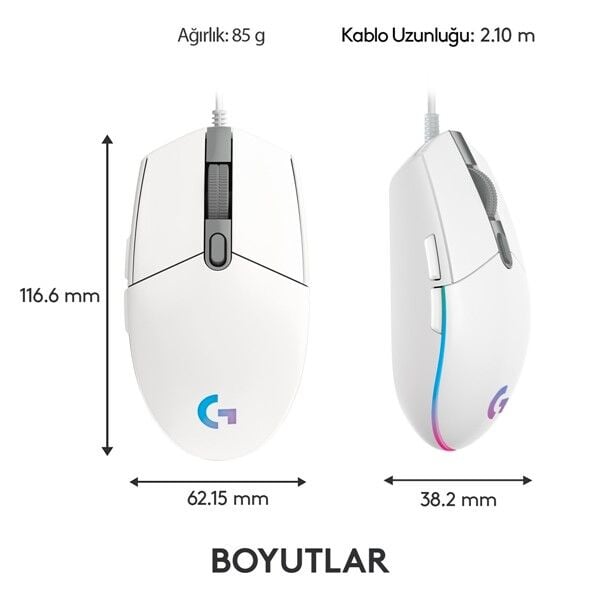 LOGITECH G G102 Lıghtsync Oyuncu Mouse Beyaz 910-005824