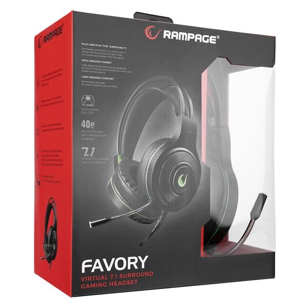 Rampage FAVORY Siyah 7.1 Usb Surround Oyuncu Kulaklık+Mic