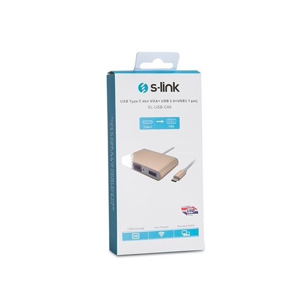 S-LINK SL-USB-C66 0.15metre TYPE-C-USB 3.0_VGA Çevirici Adaptör Gold 4K