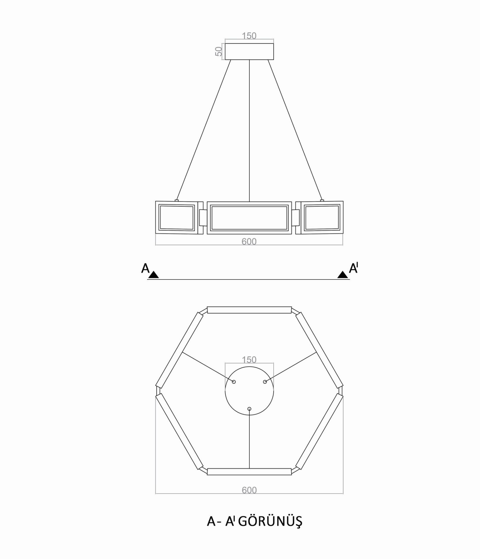 | Ölçü: Ø60cm Altıgen İçe ışık | |||||